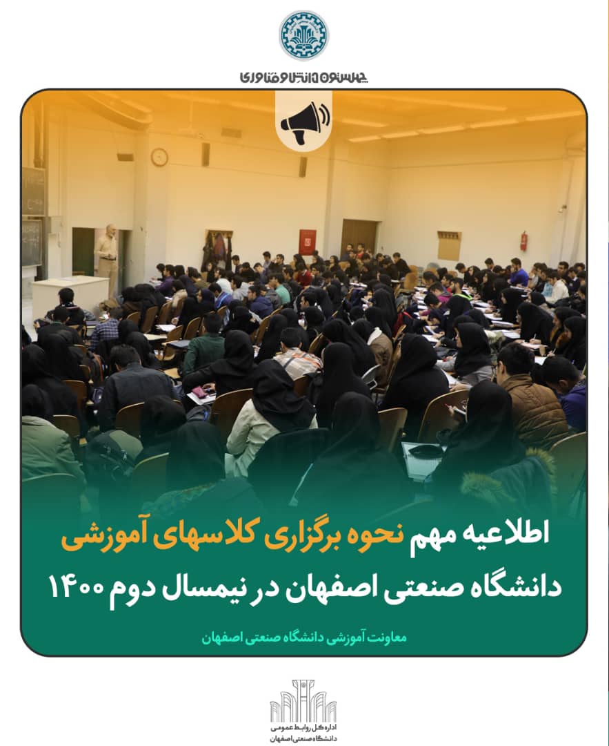 اطلاعيه مهم نحوه برگزاري کلاسهای آموزشی دانشگاه صنعتی اصفهان در نيمسال دوم 1400