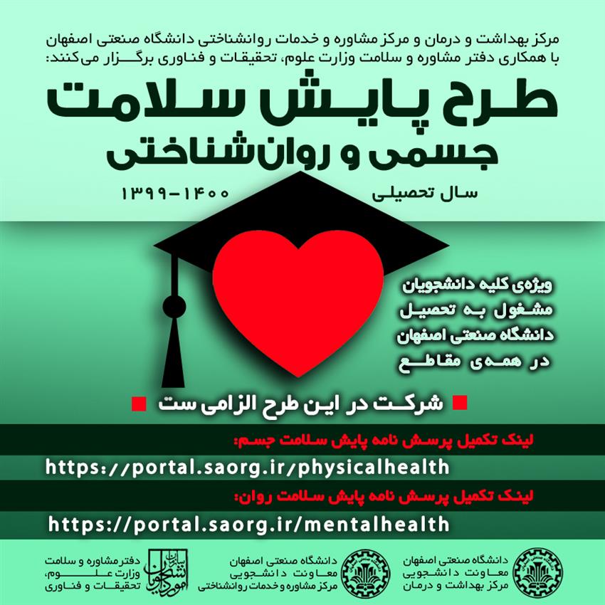 اطلاعیه يادآوري و تاكيد مجدد شرکت در طرح ملی پایش سلامت جسمی و روانشناختی