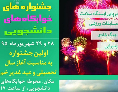 معاون دانشجویی دانشگاه صنعتی اصفهان با اعلام این که اولین جشنواره، به مناسبت آغاز سال تحصیلی و عید سعید غدیر خم با همکاری معاونت دانشجویی و معاونت فرهنگی دانشگاه برگزار خواهد شد، از تمامی دانشجویان به ویژه دانشجویان فعال در شورای صنفی، کانون‌ها، تشکل‌ها و خوابگاه ها دعوت کرد تادر ایده پردازی و اجرای این برنامه‌ها با ستاد اجرایی جشنوارة خوابگاه‌ها همکاری و مشارکت فعال داشته باشند.