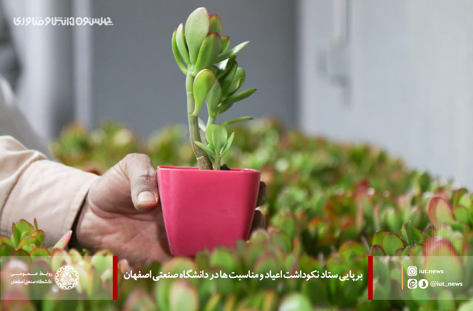 گفتنی است: ستاد نکو داشت اعیاد و مناسبت های دانشگاه صنعتی اصفهان با مشارکت و همراهی بخش های مختلف دانشگاه همچون معاونت فرهنگی، نهاد رهبری، روابط عمومی، بسیج کارکنان و... تشکیل شده است که دانشگاهیان عزیز می توانند از برنامه های متنوع آن بهره مند شوند.