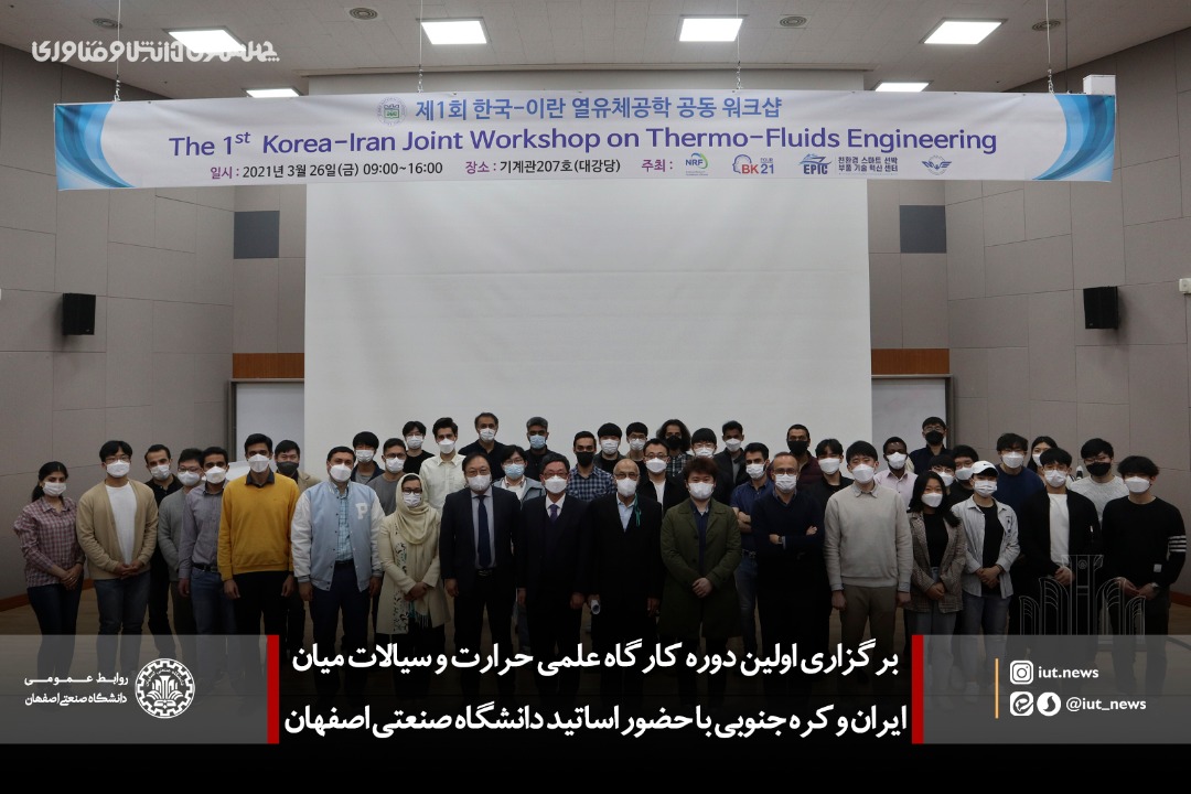 اولين دوره از کارگاه های علمي مشترک ميان ایران و کره جنوبي در حوزه حرارت و سیالات با حضور اعضای هیئت علمی دانشگاه صنعتی اصفهان به ميزباني دانشگاه پوسان کره جنوبی در فروردين ماه 1400 برگزار شد.