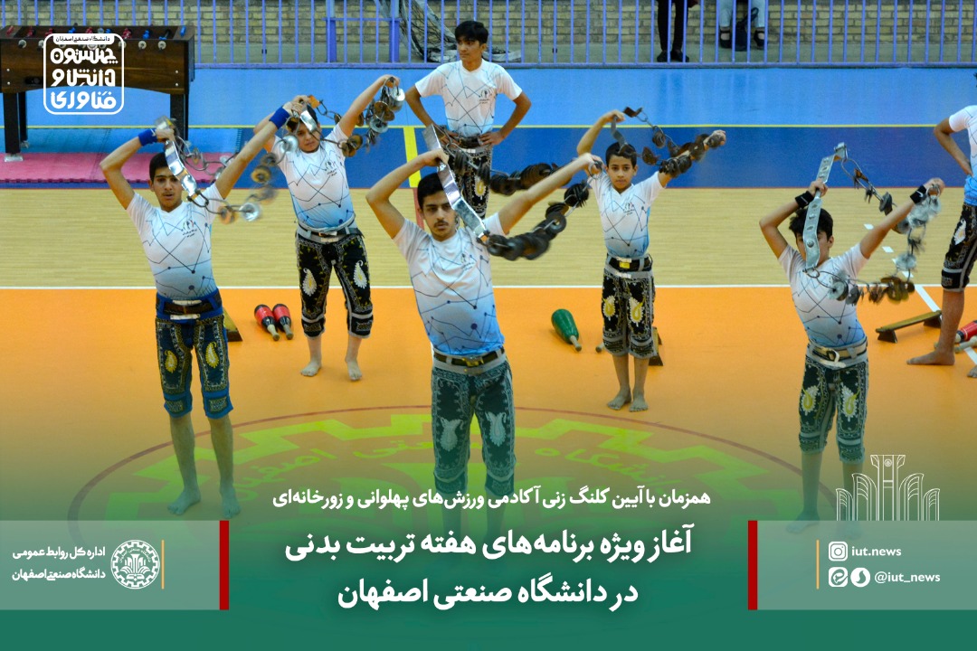 همزمان با آغاز هفته تربيت بدني صبح امروز دوشنبه 26 مهرماه، با حضور معاون دانشجويي دانشگاه صنعتي اصفهان، رئيس دفتر نهاد نمایندگی مقام معظم رهبري در دانشگاه و حاج حسين رضازاده نیکوکار دانشگاهي، مراسم كلنگ زنی آكادمي ورزش ها پهلواني و زورخانه اي در دانشگاه صنعتي اصفهان برگزار شد.