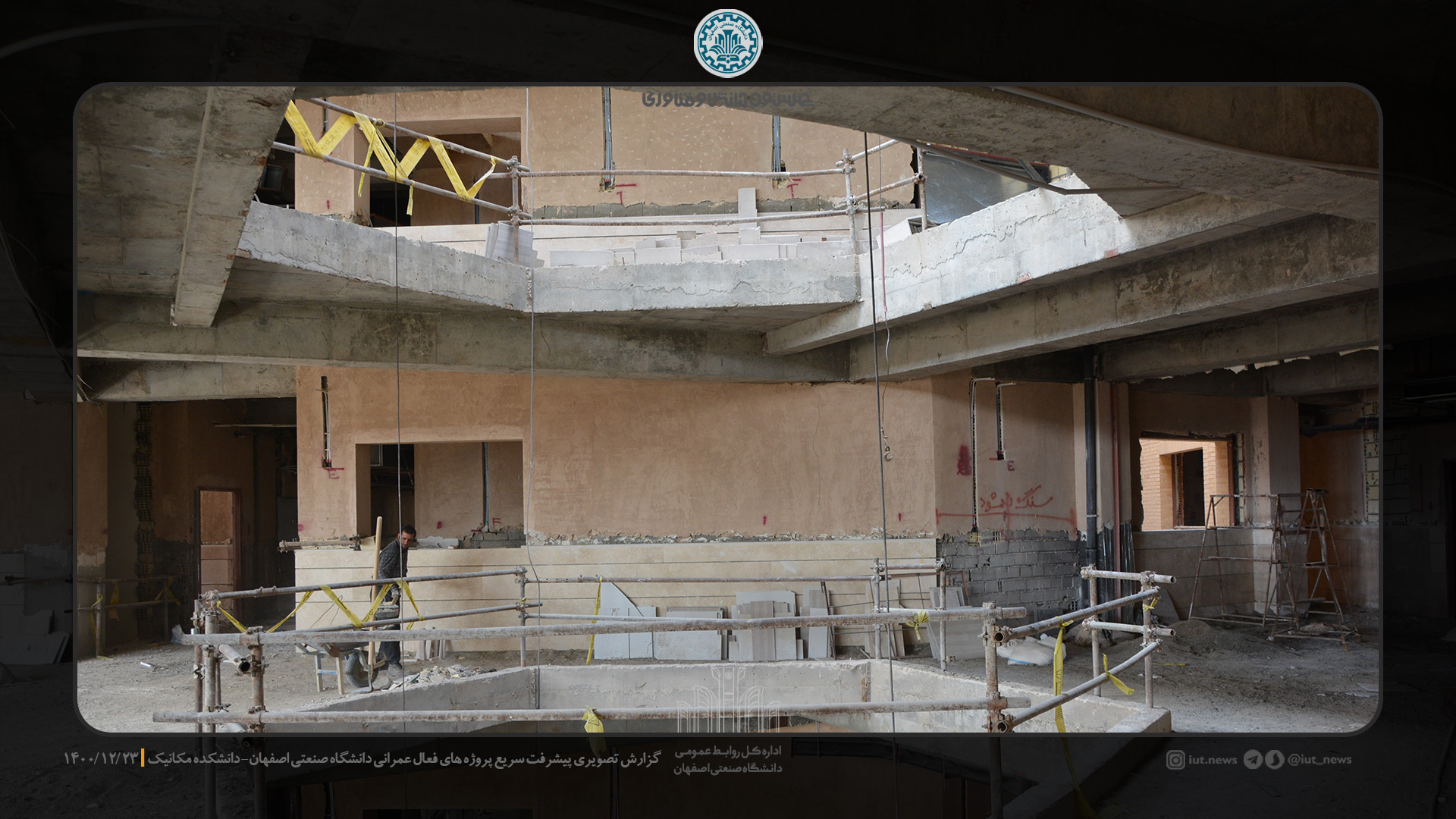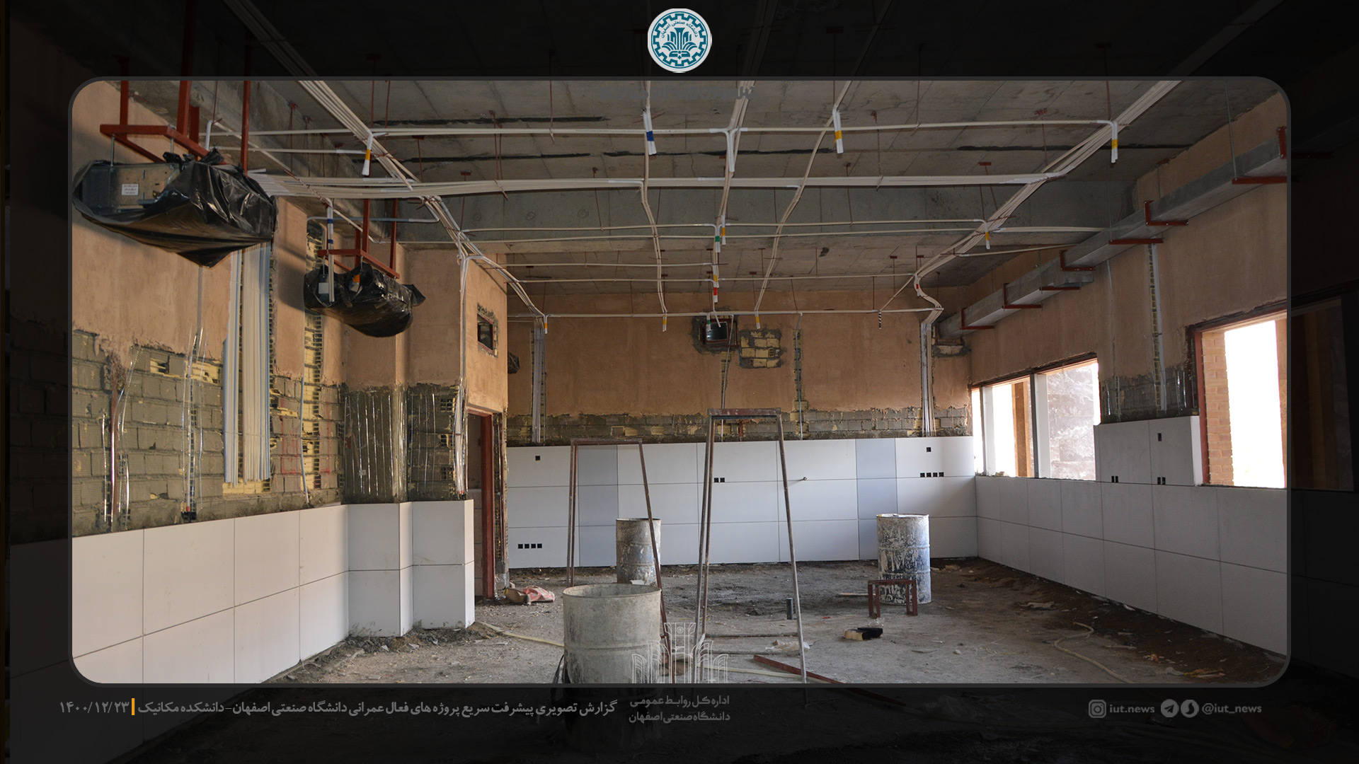 مدیر دفتر فني و نظارت بر طرح هاي عمراني دانشگاه صنعتي اصفهان روند ساخت و ساز را در روزهاي پايان سال مطلوب دانست و خاطر نشان كرد: در حال حاضر عملیات اجرایی سنگ فرش کف راهروها، تست و عایق کاری لوله های تاسیسات مکانیکی، تکمیل کانال های تهیه هواي مطبوع و عایق های آن در دست اقدام می باشد.