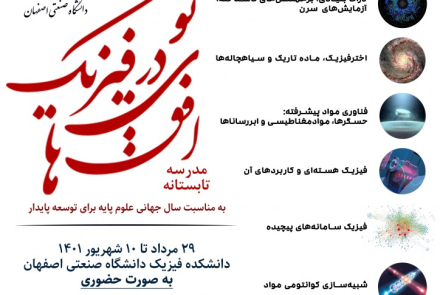 دانشکده فیزیک دانشگاه صنعتی اصفهان به مناسبت سال جهانی علوم پایه و به منظور تقویت و گسترش رشته فیزیک، رویداد 'مدرسه تابستانه افق های نو در فیزیک' را از تاريخ 29 مرداد تا 10 شهريور ماه به صورت حضوري برگزار می کند.