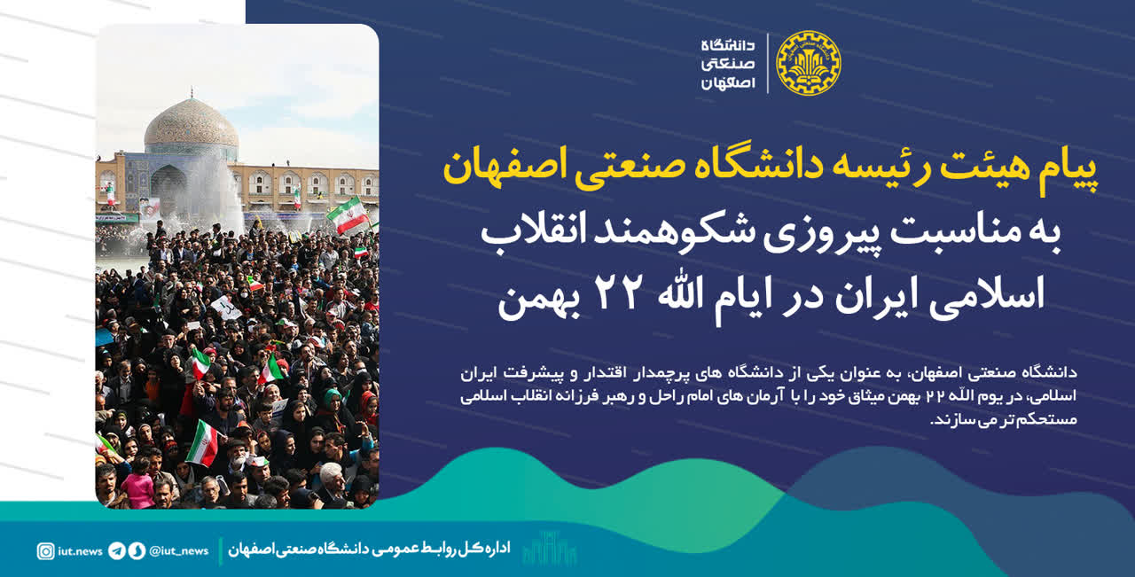 پیام هیئت رئیسه دانشگاه صنعتی اصفهان به مناسبت سالروز پیروزی انقلاب اسلامی