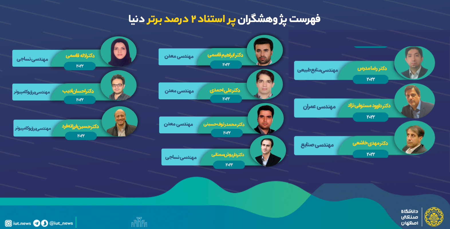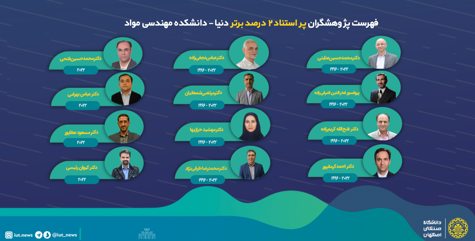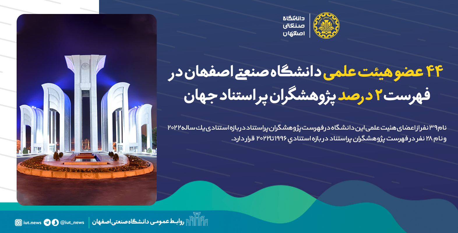 44عضو هیئت علمی دانشگاه صنعتی اصفهان در فهرست پژوهشگران پر استناد 2 درصد برتر دنیا
