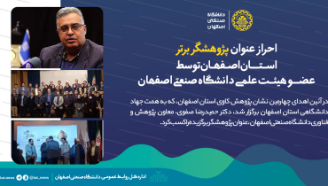 احراز عنوان پژوهشگر برتر استان اصفهان توسط عضو هیئت علمی دانشگاه صنعتی اصفهان
