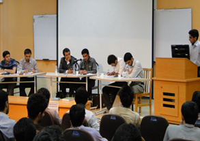 آقایان مهدی امیری، سپهر آذرشب، احسان خلجی و میلاد جلیلیپور، چهار نفر از دانشجویان دانشگاه در این برنامه به ارایه نظرات خود پیرامون طرح تحول اقتصادی و هدفمندی یارانهها پرداختند.