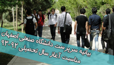بیانیه سرپرست دانشگاه صنعتی اصفهان به مناسبت آغاز سال تحصیلی 93-92