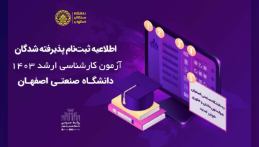 اطلاعیه پذيرفتهشدگان آزمون کارشناسی ارشد سال 1403 دانشگاه صنعتي اصفهان
